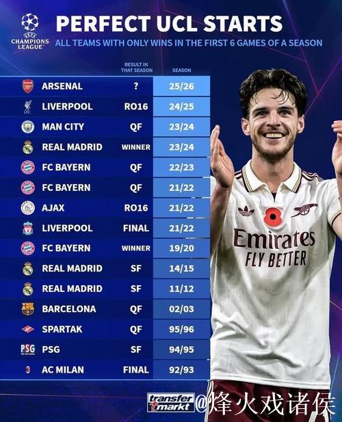 欧冠历史14次单赛季前6战全胜,仅2队最终夺冠